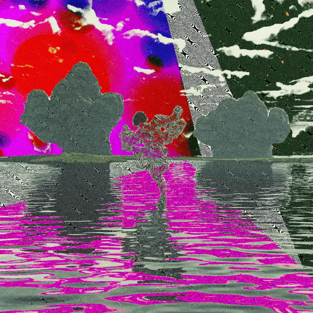 Immerse yourself in ‘Pink Kali Reflection,’ a mesmerizing artwork where the fierce and divine essence of the Kali goddess emerges from a tranquil yet vibrant water scene. The central statue, embodying Kali’s powerful stance, stands gracefully amidst rippling waters infused with a dreamy pink and purple noise, mirroring the sky’s stunning gradient of pink, purple, and red hues. Above, a black starry sky adds a cosmic depth, enhancing the mystical aura. This piece captures the duality of serenity and strength, inviting viewers into a sacred dance of reflection and reverence.